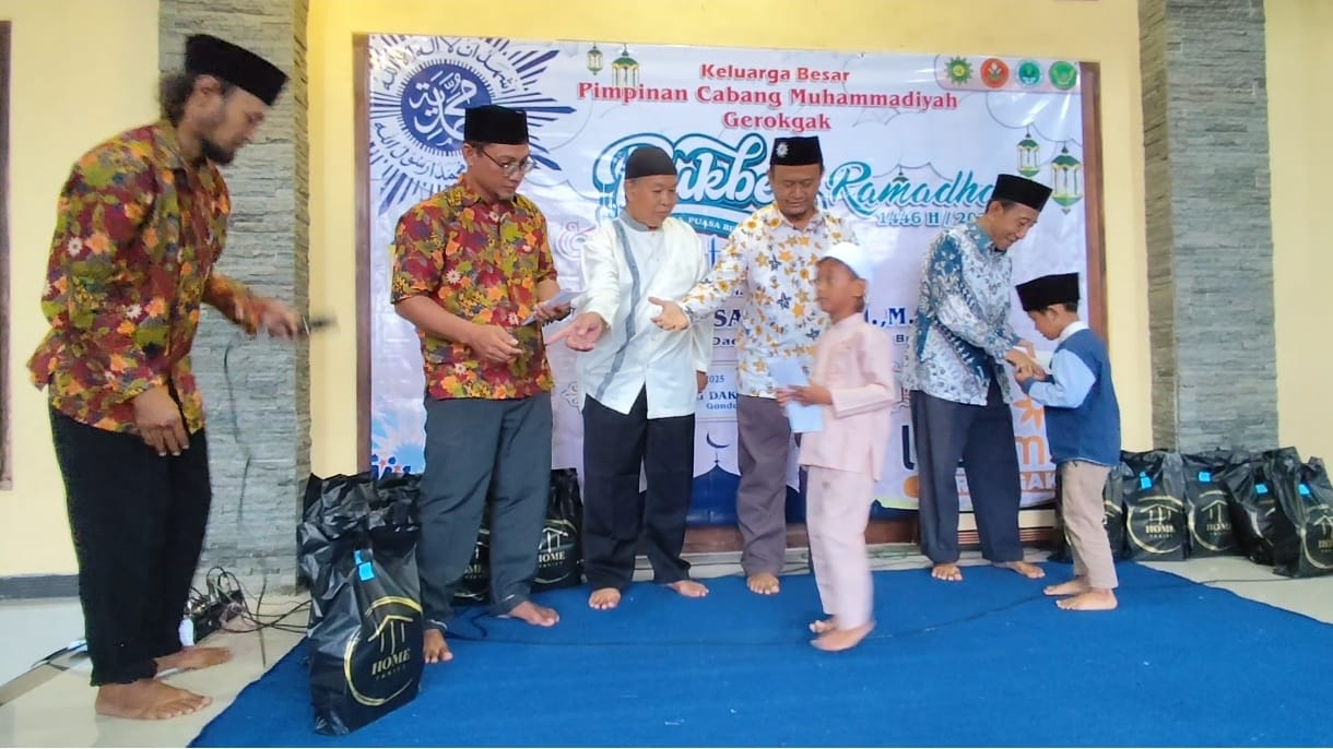 SuaraMu Buleleng – Pimpinan Cabang (PC) Muhammadiyah Gerokgak menggelar Buka Puasa Bersama (Bukber) dan Santunan Anak Yatim Piatu di Gedung Dakwah Muhammadiyah Gerokgak, Sabtu (22/3/2025). Ketua PD Muhammadiyah Buleleng, H.M. Ali Susanto, M.Pd. yang menyampaikan tausiyah membeberkan rumus meraih lailatul qodar.