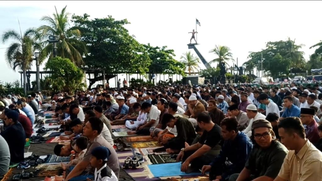 SuaraMu Buleleng – Ibadah sholat Idul Fitri 1446 yang digelar PD Muhammadiyah Buleleng di Eks. Pelabuhan Buleleng, Senin (31/3/2025) berlangsung khidmat. Warga Muslim Singaraja memenuhi nyaris seluruh areal eks. pelabuhan utama di era keemasannya tersebut.